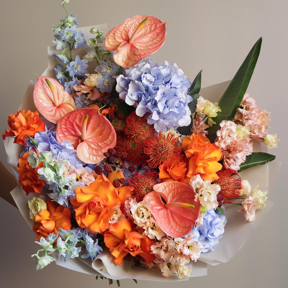 Bring a burst of autumn warmth into Dubai’s endless summer with Clockwork Orange, a bouquet that feels like a golden hour captured in petals. A rich harmony of orange roses, fiery gerberas, and soft greenery, this arrangement radiates energy, optimism, and the cozy glow we crave in fall.