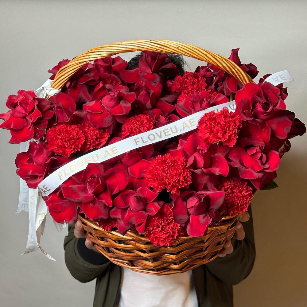 Rustic charm of a wicker basket meets Instagram-worthy abundance of red blooms! A grand gesture without the need for a red carpet, it’s a gift that wows — and for a reason.