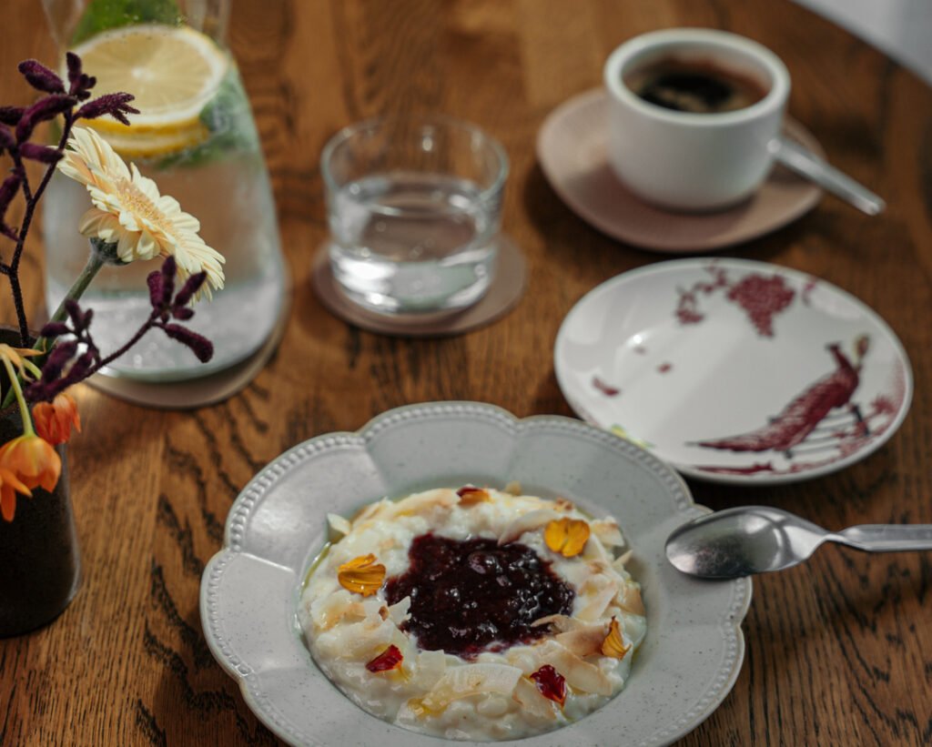 To finish, there is a creamy rice pudding with strawberry, toasted coconut and olive oil, priced at AED 40.