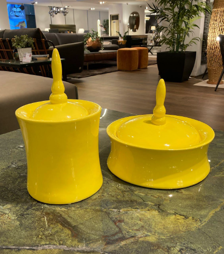 Colourful and refined vase from the Atelier collection, inspired by classic and Eastern designs. Exclusive selection of ceramic vases with a modern twist on classic designs.Various shapes and colours, including glossy Bordeaux, bright glossy yellow, matte black, and antiqued platinum Oxyd. Elevate your home during Ramadan with these charming statement pieces.