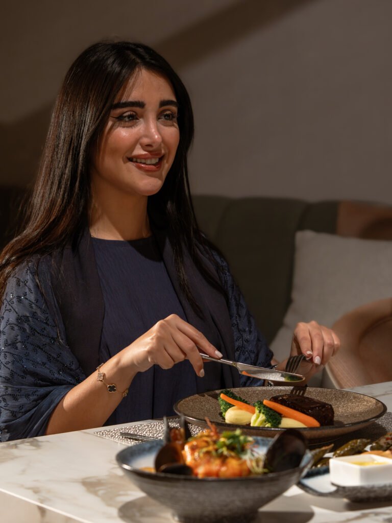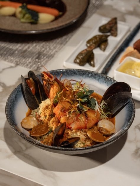 Familiar favourites, from tender lamb shoulders to delicate fish couscous, are reimagined against the glittering skyline, turning the evening into a moment to savour above the city. From sunset until 9 pm, the Iftar continues with delicate sweets, fresh fruit, and traditional Arabic treats, each crafted to reflect the spirit of Ramadan. At AED 550 per person, the evening offers a rare vantage, where the city below seems to pause and the rhythm of the holy month can be felt in every detail.