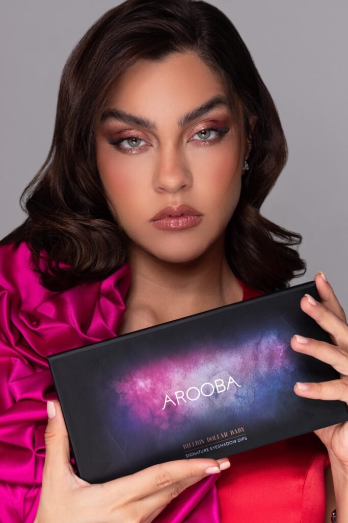 To celebrate this milestone, Arooba Beauty unveils Billion Dollar Baby, a palette that captures the glamour of a star. It features wearable pinks, mauves, rich browns, and a pop of icy blue, with ultra-luxurious, skincare-infused textures that are made to play, layer, and glow.