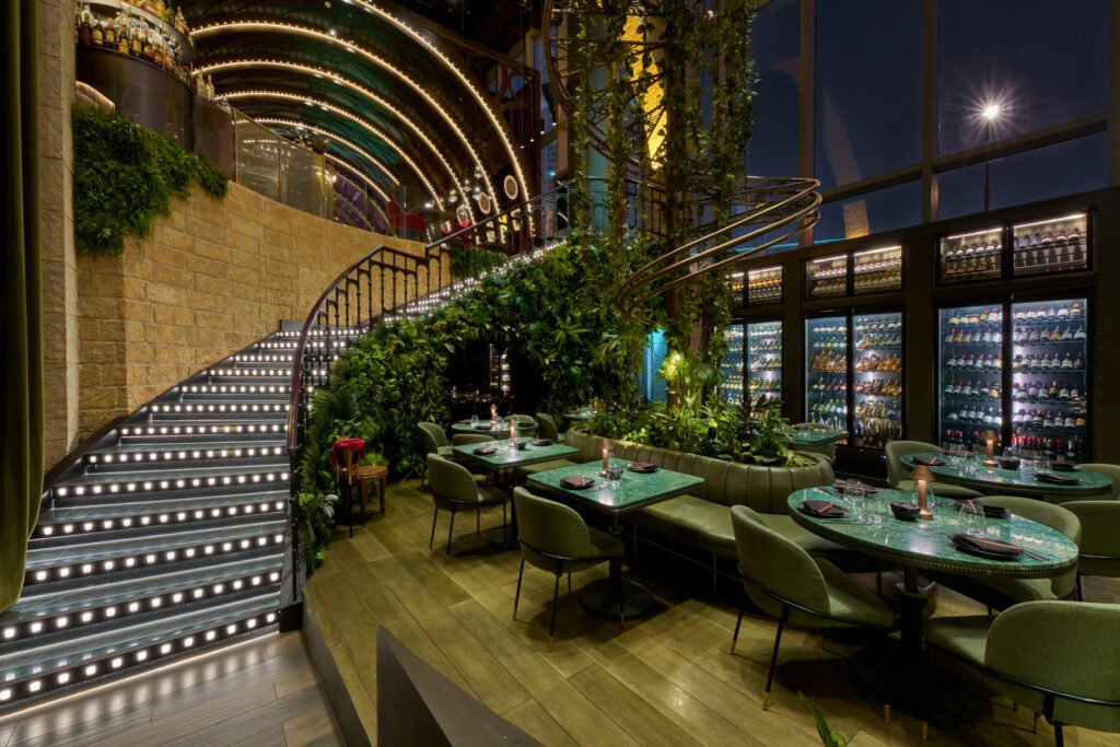 As guests step inside, they are welcomed into a dramatic setting where glowing metallic accents, theatrical lighting and sweeping views of Downtown Dubai set the mood for a memorable night.