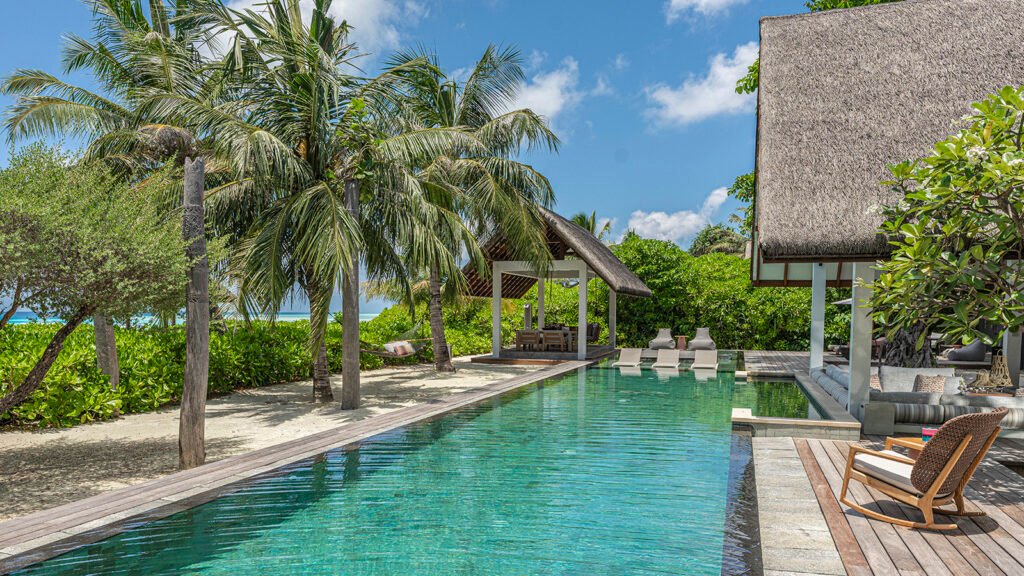 The Four-Bedroom Landaa Estate sits along 80-metres (87-yards) of private beach, offering a 20-metre (22-yard) lagoon-front pool, generous al fresco living areas, and a rooftop terrace perfect for sunset cocktails, private parties, or relaxed lounging beneath the stars. Ideal for milestone celebrations or multi-generational stays, this oceanfront estate blends relaxed tropical style with refined seclusion.
