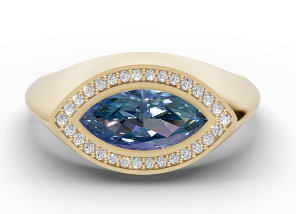 A 0.50CT marquise-cut vivid blue diamond set in 18K gold anchors this piece inspired by intuition and clarity. Elongated, elegant, and piercingly modern, the ring embodies perceptiveness and forward vision.