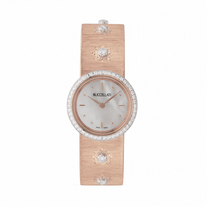 This same philosophy extends to Buccellati’s timepieces, where the art of watchmaking harmoniously intertwines with high jewellery craftsmanship. The Macri Classica Watches and Tulle Enamelled Jewelled Watches reinterpret the Maison’s signature aesthetic through hand-engraved gold cases, ornamental detailing, enamel work, and precious gemstones. Designed as true objects of adornment, these watches blur the line between timepiece and jewel, embodying Buccellati’s vision of luxury that is timeless, refined, and effortlessly wearable.