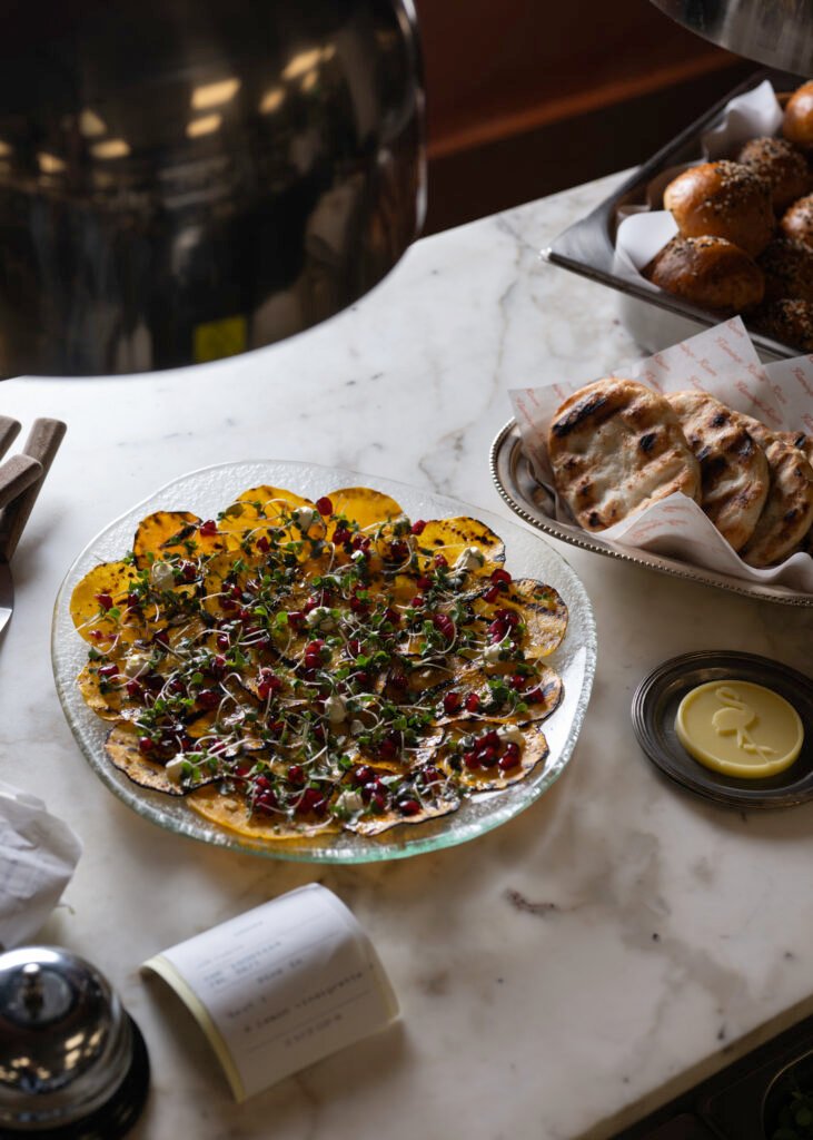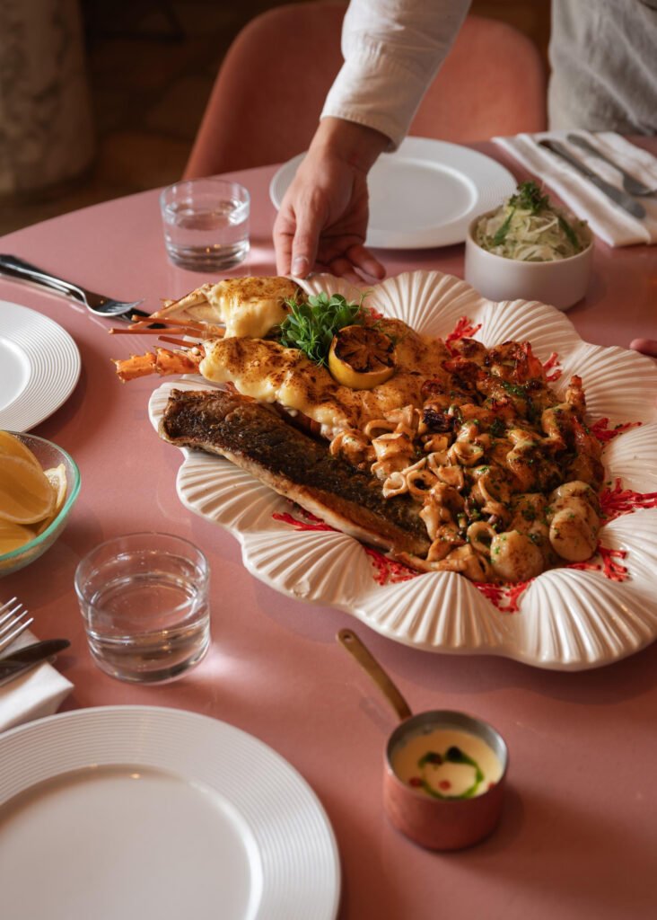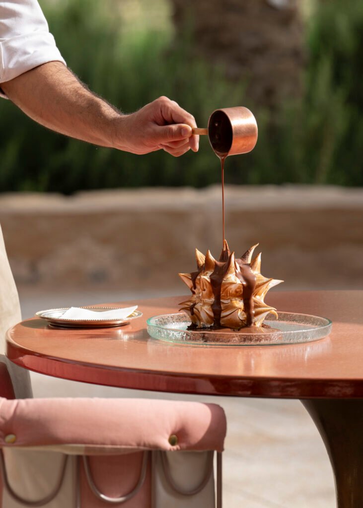 With the cooler weather returning, the restaurant’s picturesque terrace offers a beautiful setting to savour lunch or dinner with uninterrupted views of At-Turaif and Wadi Hanifah. Adorned in Flamingo Room’s signature palette of blush tones and golden accents, the terrace transforms with the changing light – from leisurely midday lunches to golden hour cocktails and starlit dinners.