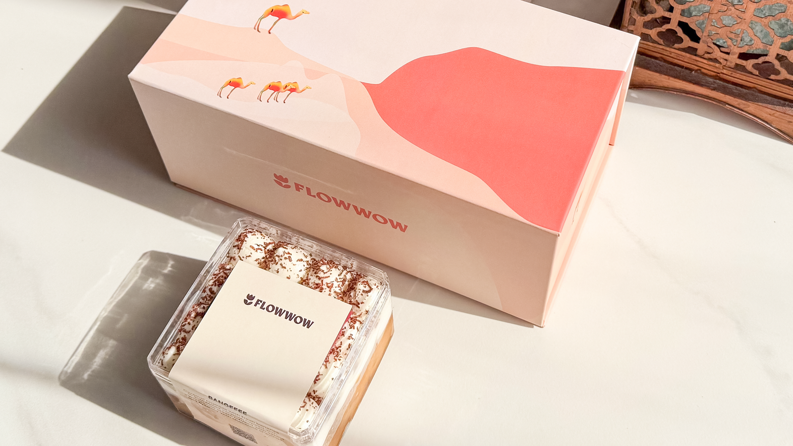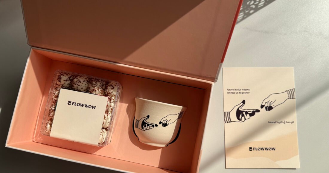 The project centers around a limited-edition gift set co-created with a UAE-born artist Batool Al Tameemi, available exclusively on the Flowwow website and app. Each set features a hand-crafted Arabic ceramic cup designed by Batool and adorned with her original illustration, paired with a hand-made Banoffee cake jar.
