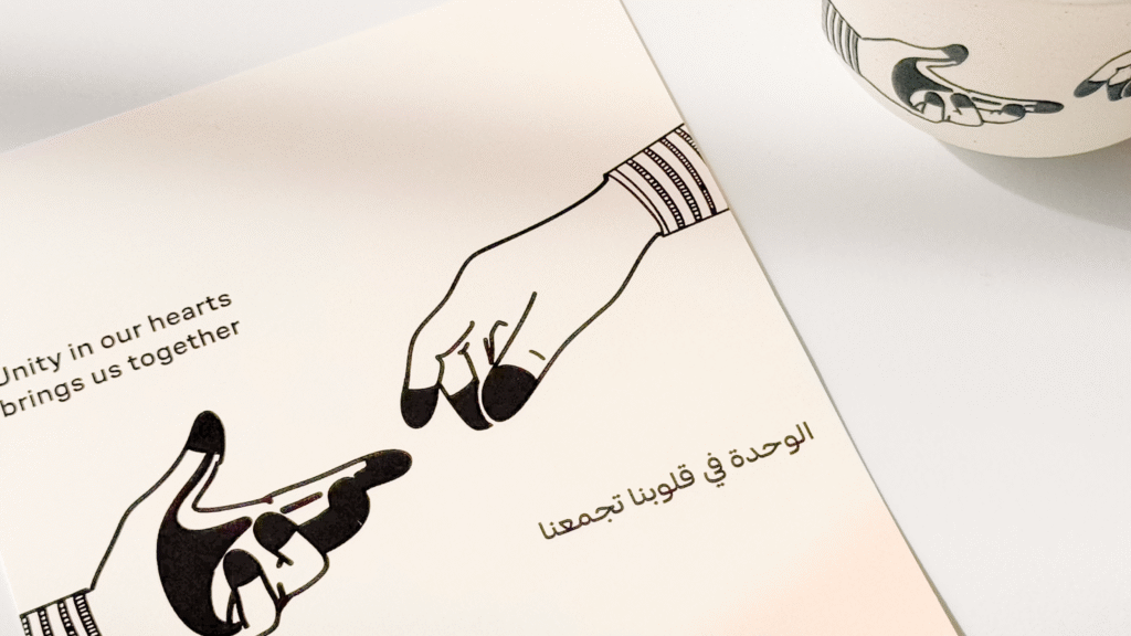 Explaining the design, Batool Al Tameemi shared: “This illustration portrays two hands — one offering and one receiving — embodying the essence of Emirati generosity. The giving hand, adorned with traditional rawaib henna, symbolizes grace, hospitality, and the cultural beauty of sharing. Rooted in our gift-giving traditions, the gesture reflects how acts of kindness and exchange form the heart of connection between people.”