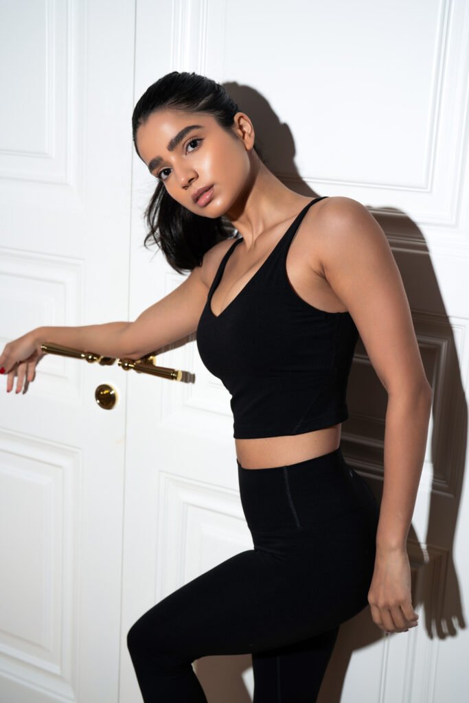 - Gia Crop Black – Minimal, sleep crop top in black with stitched padding that actually stays put. With light support and delicate strap, it’s perfect layered or as a statement piece on its own and can be worn on casual days, lighter workouts or when comfort is top priority. (AED 195)