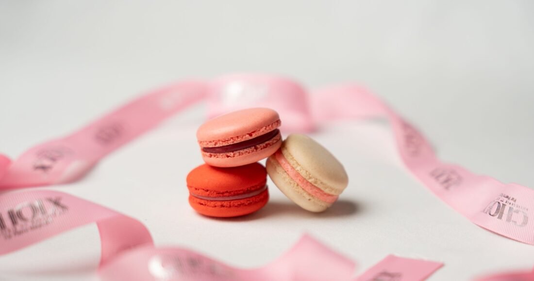 - Trio in Pink – A playful macaron medley of cherry, raspberry rose, and raspberry (AED 10 each).