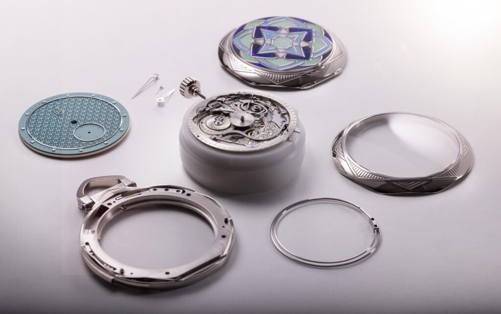 The Lépine pocket-watch format, featuring a thinner, bridgeless movement, amplifies this artistic vocabulary. Its generous architecture offers clarity and space, allowing métiers d’art to unfold with full expressive depth: engraving, marquetry, and stonework breathing across surfaces shaped specifically for them.