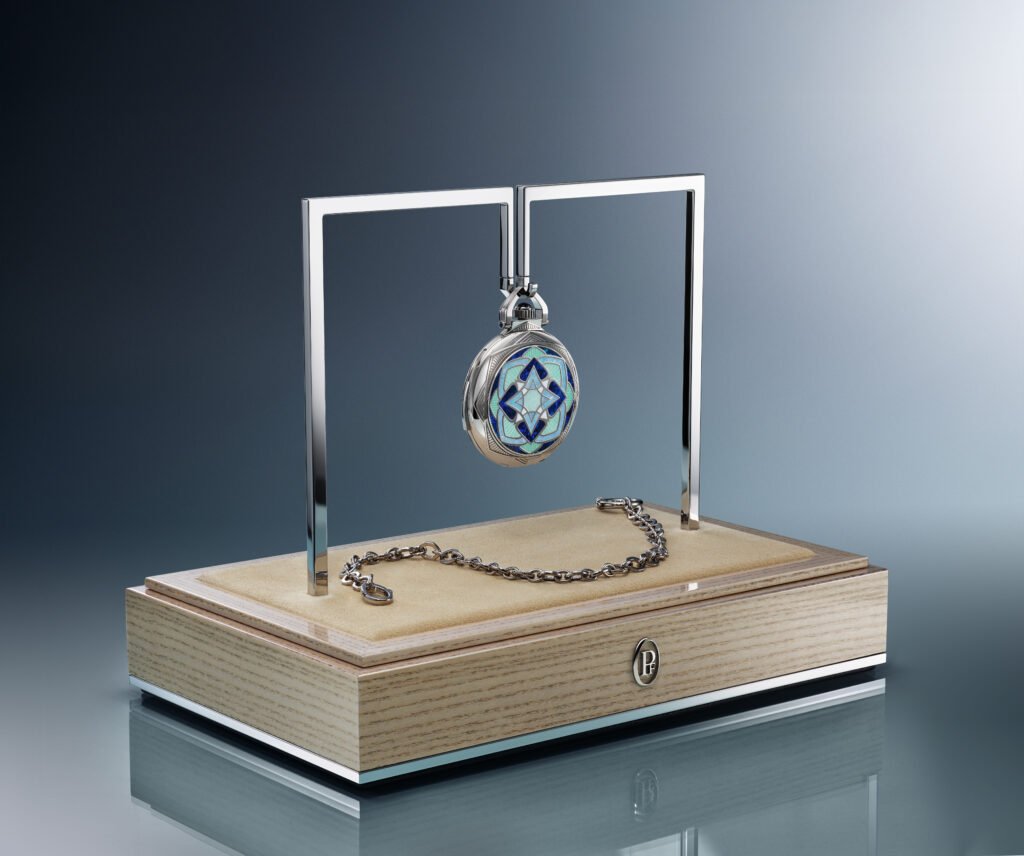 Among them, the engraving was entrusted to Atelier Blandenier, one of Switzerland’s rare ateliers dedicated exclusively to traditional hand-engraving for haute horlogerie, a discipline that extends to the movement’s decoration. The chain, created by Laurent Jolliet, Switzerland’s last master chain-maker, is entirely fashioned in 18-carat white gold. Its hexagonal links mirror the geometry of the bail, while the oval links recall the elliptical purity of the PF emblem.