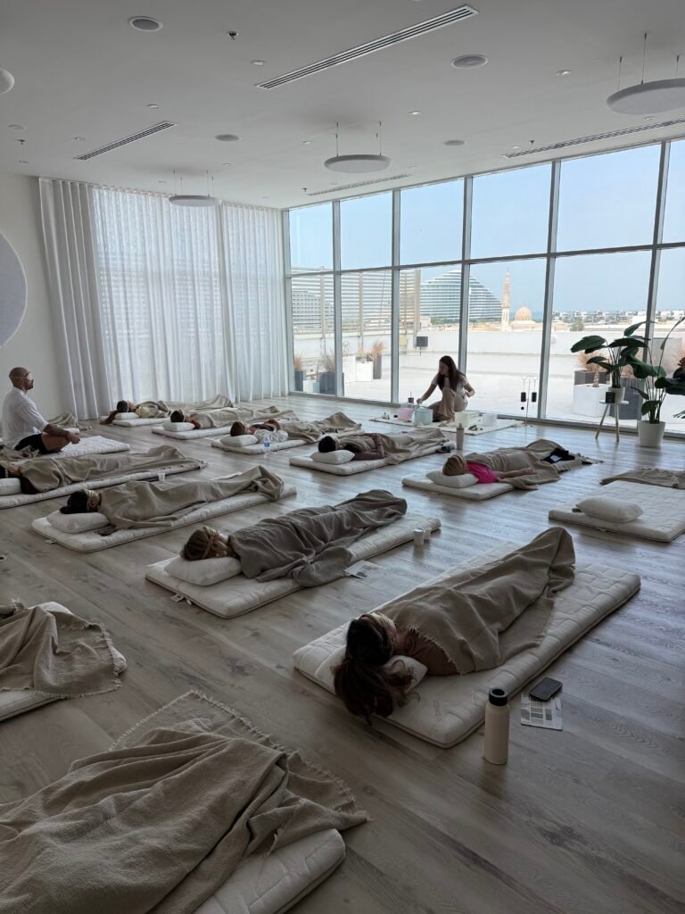 The morning began with a thought-provoking welcome by Dr. Ozgur Dedehayir, KAILO’s Director of Innovation, who shared insights on the importance of community, innovation, and inner wellbeing in today’s fast-paced world. This was followed by a deeply restorative meditation and sound bath led by Alexandra Venison, designed to help attendees recharge and reconnect.
