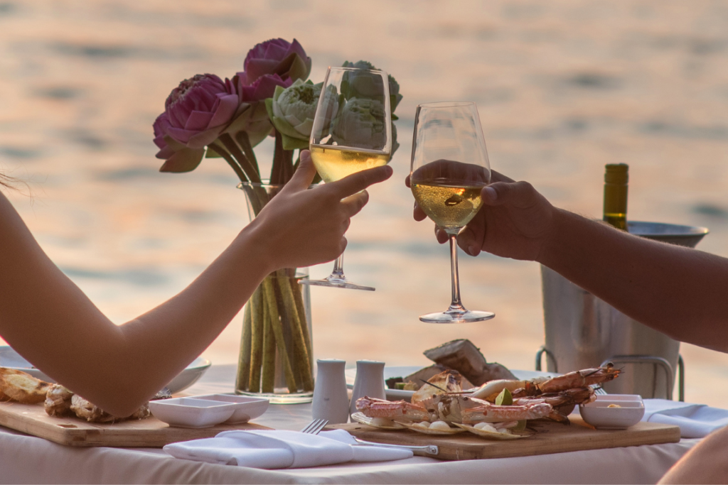 Couples can indulge in a six-course tasting menu by Chef Nicolas Isnard at Bord Eau, accompanied by live harp music (AED 550 per person; optional wine pairing AED 350), or enjoy a romantic Dine Under the Stars poolside experience with a four-course menu and spa credit (AED 588 per couple).