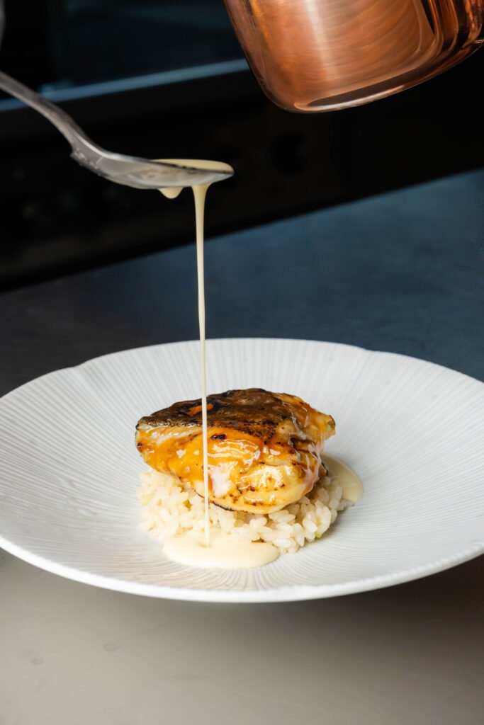 The main courses continue the celebration of flavour and artistry, featuring Parmesan Rigatoni with truffle dashi and black pepper, Ginger Miso Cod with yuzu and star anise, Chicken Kiev with Tokyo turnip and horseradish, and Lamb Rump with Calabrian chilli ragù and mint. Optional upgrades include Pepper Sirloin Steak with bone marrow and grain mustard or Lobster Thermidor, available as a half or whole serving.