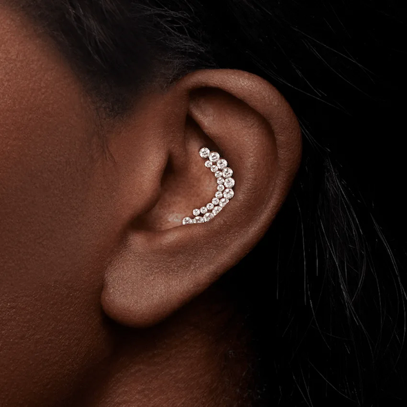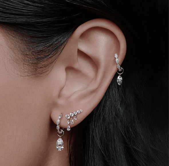 Maria Tash expands their coveted Invisible Set Collection with striking new designs. The latest drop introduces pear, marquise, and double pear studs, expertly crafted to enhance brilliance through the brand’s signature setting. This innovative technique ensures maximum light return while creating a refined, weightless effect on the ear.