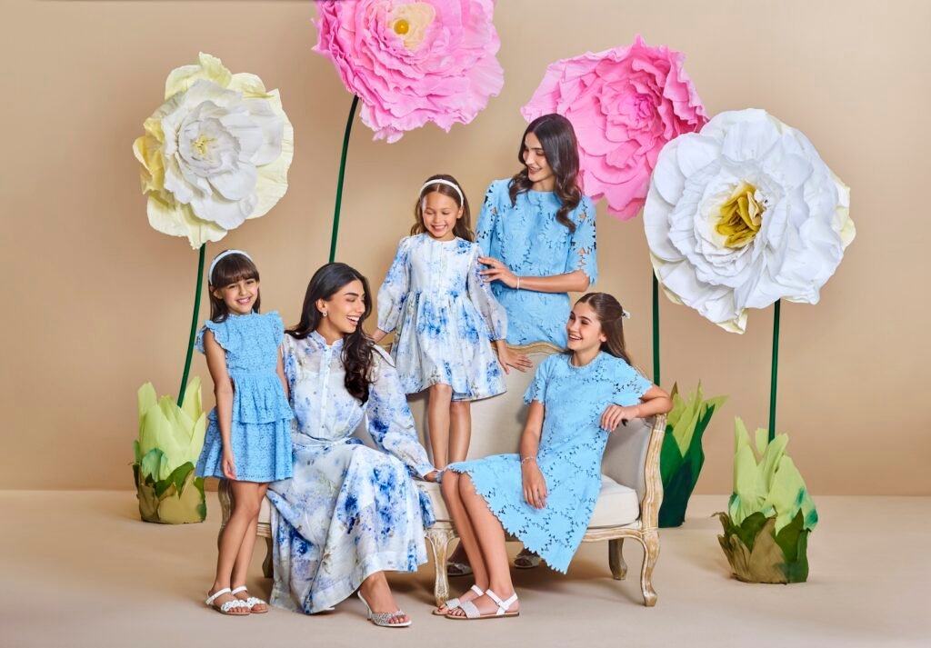 The latest launch brings two complementary style stories to life. One draws inspiration from fresh springtime blue florals, capturing daytime elegance and family moments through light, graceful designs. The other focuses on refined Ramadan evening silhouettes, offering understated sophistication through warm neutrals, subtle shimmer, and elevated textures. Together, these styles create a versatile wardrobe that allows families to transition seamlessly from daytime gatherings to evening celebrations throughout the month.