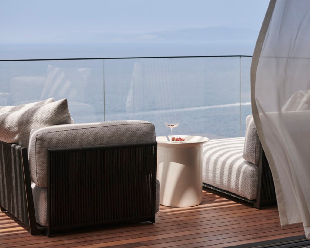 Here, seawater pools and natural surroundings create a seamless dialogue between indoor luxury and the beauty beyond. Panoramic bay views reach into the verandas of the Lagoon suites, where living greenery complements modern design with soft, organic warmth.