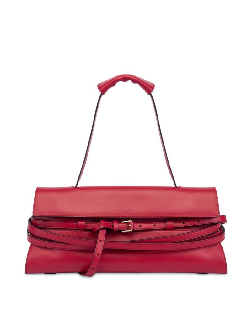 Moschino introduces a new iteration of the Tie Me bag, launched with Resort ’26 and continuing into Spring–Summer 2026. While retaining the signature tied detail, the style is reworked with a new silhouette, featuring softer proportions and a more elongated, contemporary shape.