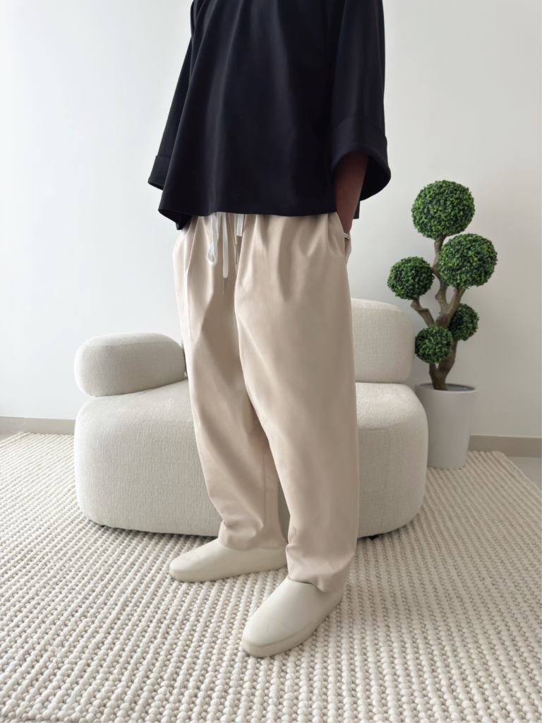 At the core of NUWAE’s design language is restraint guided by function. Clean lines, minimal visible seam work, and relaxed proportions define each collection, alongside recurring kimono-inspired silhouettes across T-shirts and outerwear, and loose-fitting trousers designed for comfort and movement. Rather than relying on overt branding or embellishment, the focus remains on how garments sit on the body, how they move, and how they perform over time.