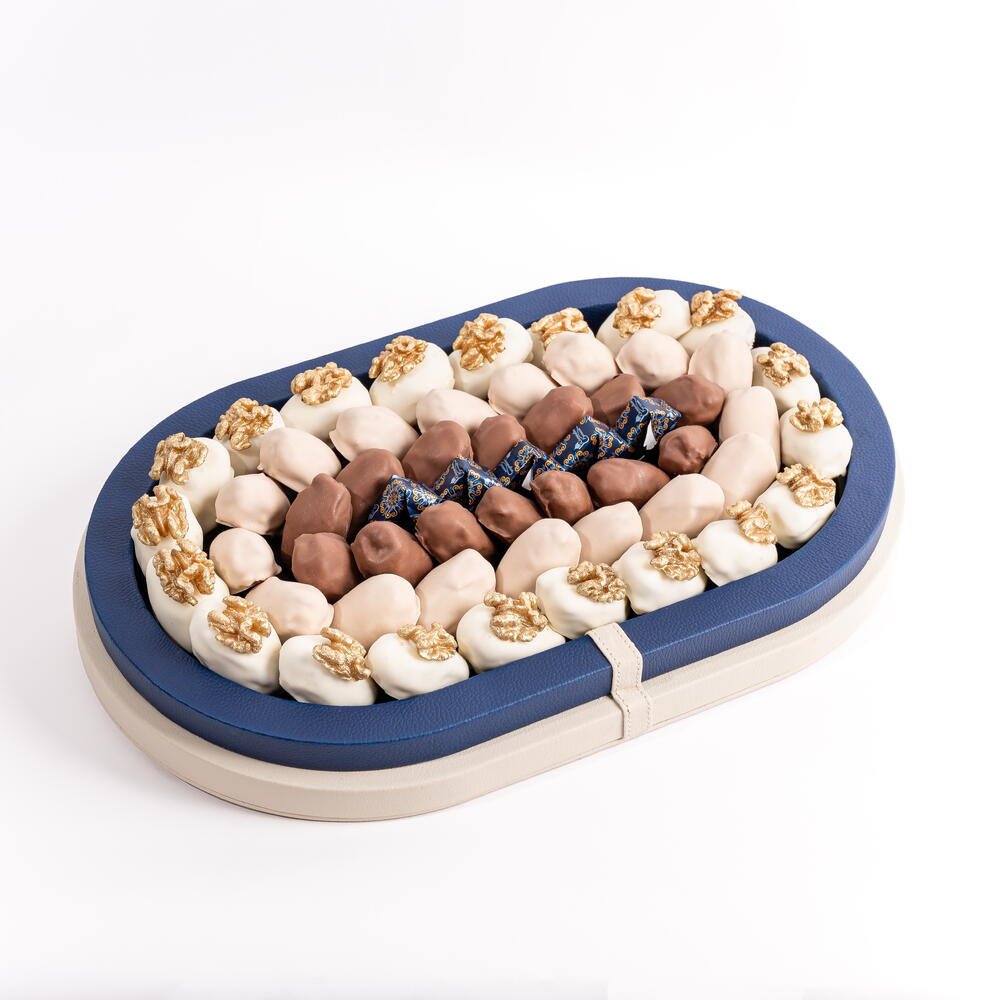 This refined assortment presents a harmonious balance of textures and finishes: assorted milk chocolates, milk chocolate–covered dates, and white chocolate–covered dates. This treasure chest is going to add a delightful touch to Iftar gatherings or become a charming present that accompanies your warm wishes.
