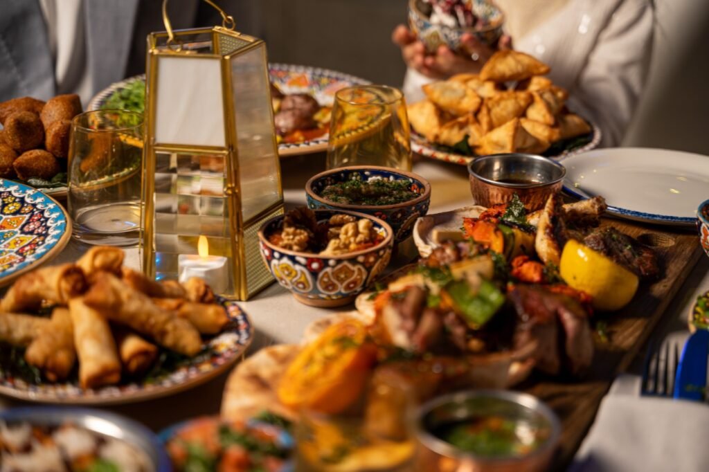 An Iftar buffet from 5:30pm, showcasing traditional Ramadan flavours in a generous spread brought to life through live cooking stations. Guests can savour the warm, festive atmosphere with beautifully styled indoor and outdoor seating, soft ambient lighting and charming lantern-inspired décor.