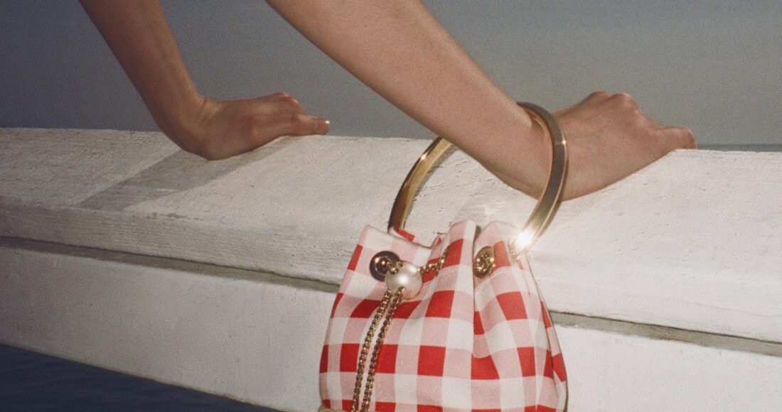 A nostalgic summer motif is refreshed in vibrant red and marine blue, evoking halcyon days spent in the sunshine.