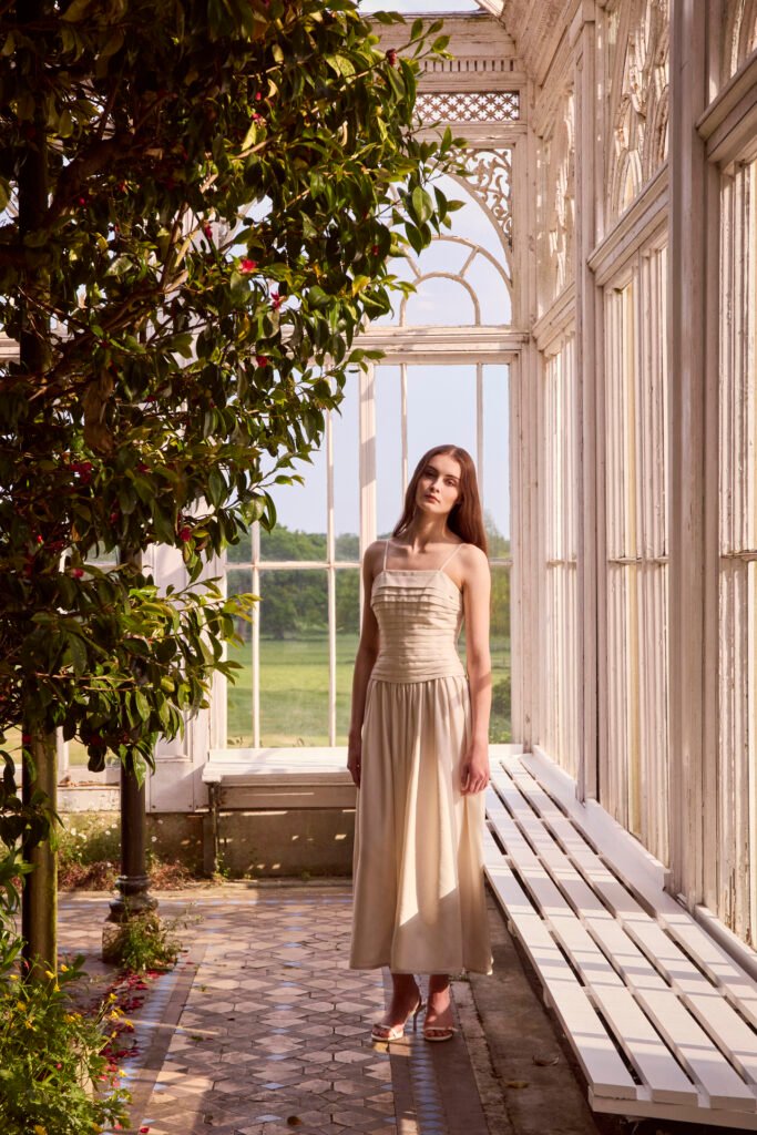 The Spring/Summer 2026 collection, which marks Santolina’s regional debut, is anchored by a signature capsule titled Flora. Crafted from luxurious silk and linen blends, Flora features hand-drawn floral prints inspired by the gardens of Villa Santolina, complemented by sculpted waistlines, soft tailoring, and refined silhouettes that flatter and flow.