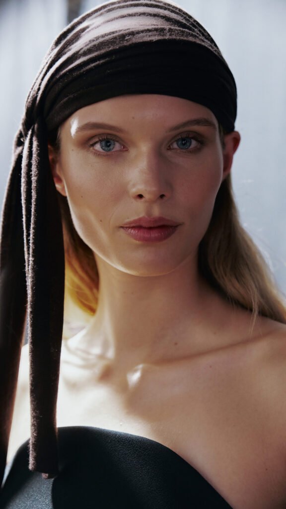 To complete the looks, thin leather belts and cummerbunds appear styled around the hips, bringing the waistline lower for the season—as also seen in menswear looks. Flat pointed shoes with a knotted bow in soft leather and sneakers with an ultra-thin leather sole offer the wearer a close-to-barefoot fit and feel.