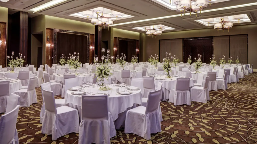 There’s something effortlessly majestic about the Alyazya Ballroom at Park Hyatt Abu Dhabi Hotel and Villas, a venue defined by timeless sophistication. Spanning 523 square meters and hosting up to 550 guests, its light-filled space can also be divided into three soundproof sections, making it ideal for celebrations of any scale. Its adjoining terrace overlooking the golf course creates a stunning backdrop for sunset moments, while in-house catering and seamless service elevate every occasion with refined elegance.
