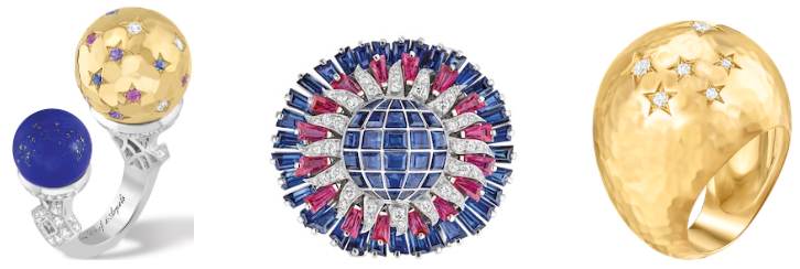 Since its founding, Van Cleef & Arpels has been enchanted by the observation of the celestial vault and stars. From the ballet of the planets to the paths of the constellations and signs of the zodiac, astronomy colors the Maison’s imaginative universe. In 2021, the Sous les étoiles, heavenly dreams High Jewelry collection offered a captivating vision of the cosmos. This year, Van Cleef & Arpels continues its tribute to the poetry of the sky with a ring-and-earring set that echoes its patrimony.