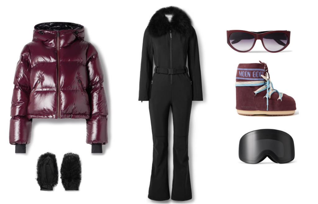 Aztech Mountain Jacket, Goldbergh Gloves , Yves Salomon Ski Suit, Barton Perreira Sunglasses, Moon Boot Ski Boots, Goldbergh Ski Goggles