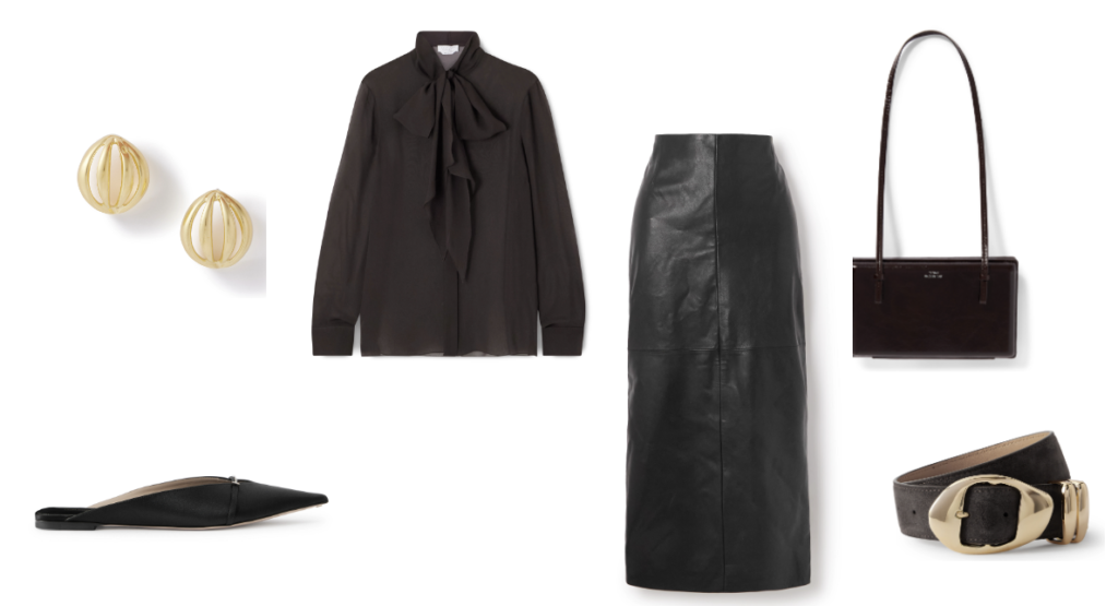 Ysso Earrings, Gabriela Hearst Blouse, Tom Ford Mules, Nour Hammour Skirt (coming soon), Toteme Bag, Amanu Belt